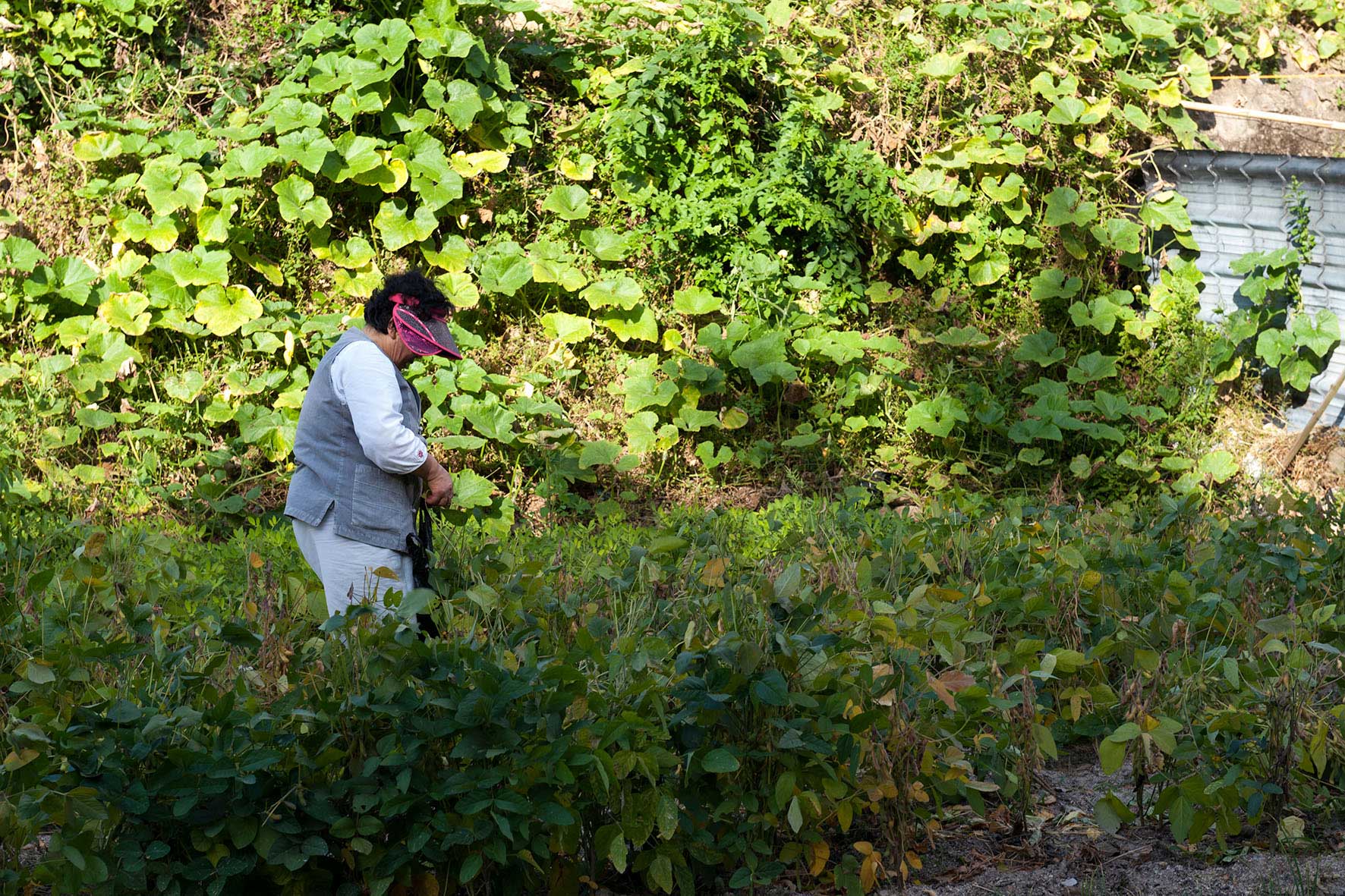 Jardinier en train de couper les herbes aux ciseaux