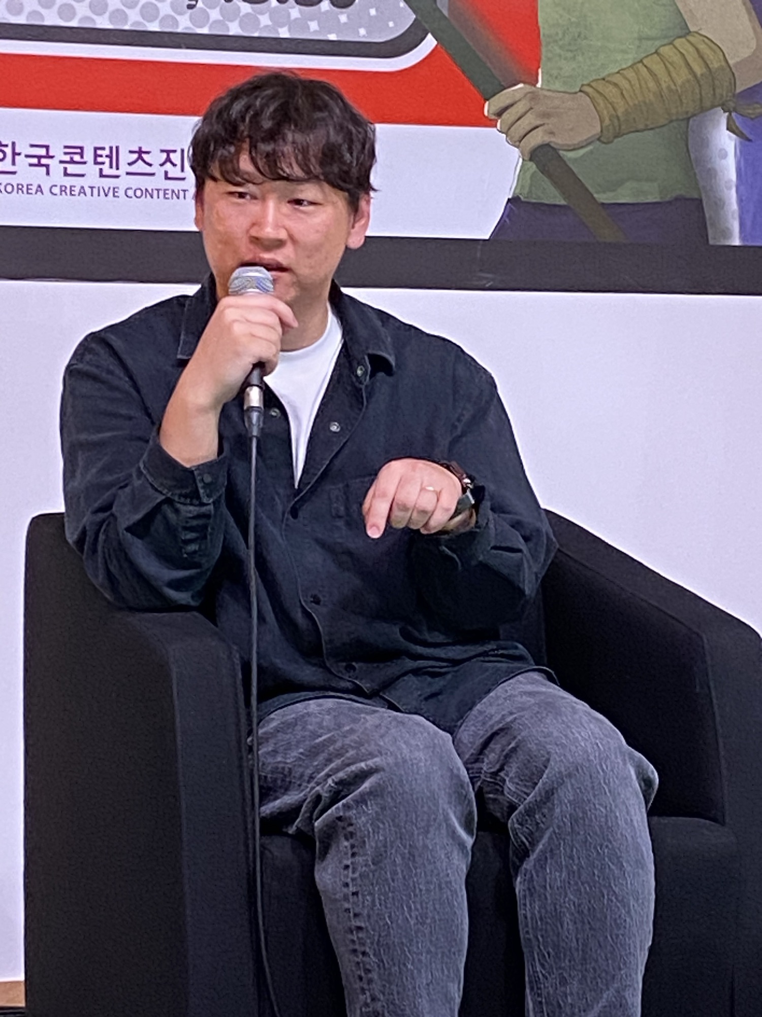 « Quels conseils pourriez-vous donner à ceux qui souhaiteraient se lancer dans l’aventure du webtoon ?« , demande une personne du public. Il avertit : « Le meilleur conseil que je pourrais donner à quelqu’un désirant se lancer dans le webtoon est qu’il faut être prêt à s’engager dans une profession qui demande énormément de sacrifices, d’heures de travail, de solitude et d’immobilité. Si vous êtes prêt à cela, alors go. Et surtout « have fun »! Il est crucial de ne pas brûler les étapes : maîtriser son art demande de passer par le stade débutant, puis intermédiaire, et ainsi de suite. L’engagement et la passion sont les clés du succès« .