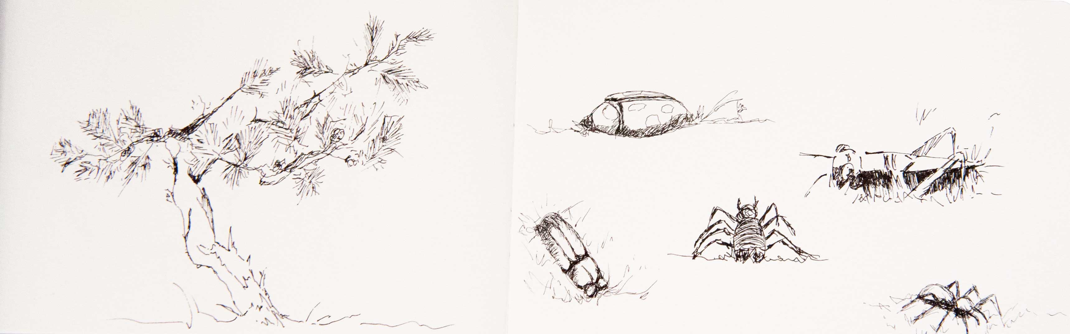 Croquis au rotring sur carnet de voyages Moleskine – Hassla Park